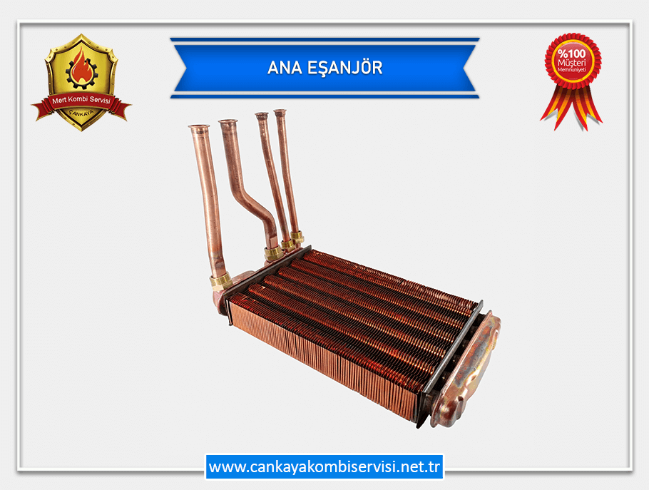 • Ana Eşanjör: Kombinin kalbi diyebiliriz. Doğalgaz yanmasıyla oluşan ısıyı, tesisat suyuna aktaran parçadır. Hem sıcak su hem de peteklerin ısınmasını sağlar. Zamanla kireçlenme ve delinme gibi sorunlar yaşayabilir.